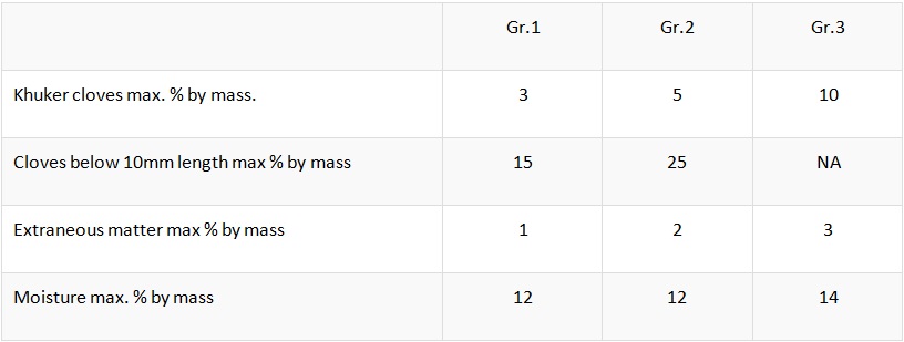 This quality of cloves is as average quality with 3 to 4% admixture, is tolerable and slightly dark / bright in color.
